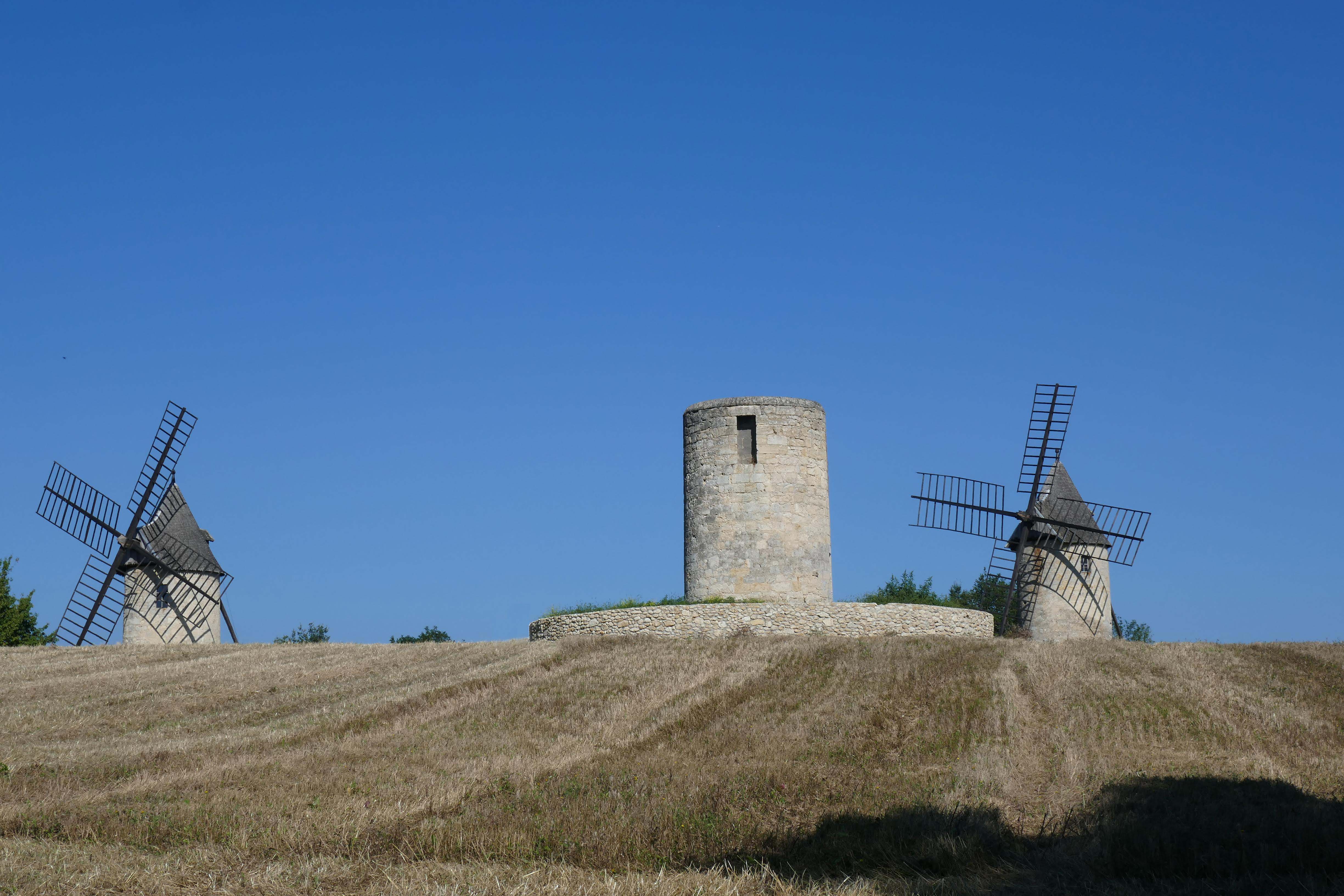 Windmills and a pigonnier in Gascony